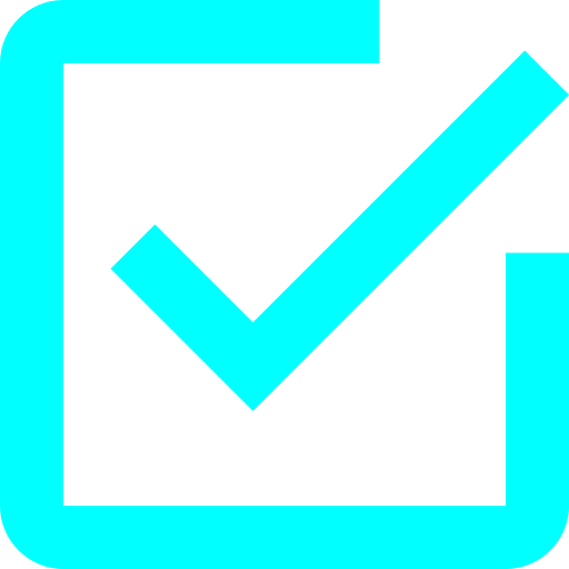 Blue checkmark inside a square, representing verification or success.
